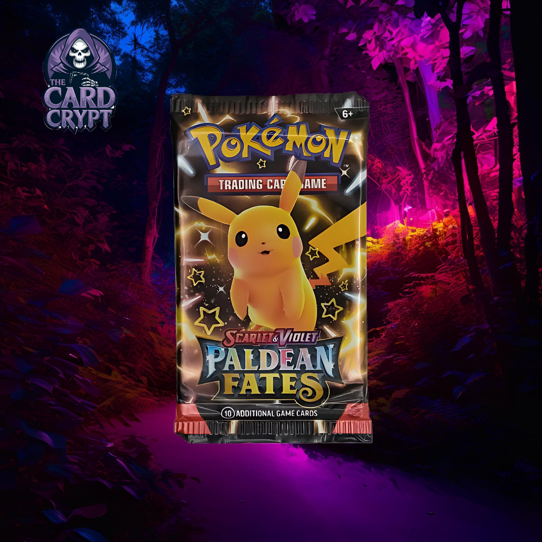 Dive into the dazzling world of Paldean Fates with a booster pack from the Pokémon TCG! This special expansion is bursting with Shiny Pokémon, exciting new mechanics, and stunning artwork, offering collectors and players an unforgettable experience.